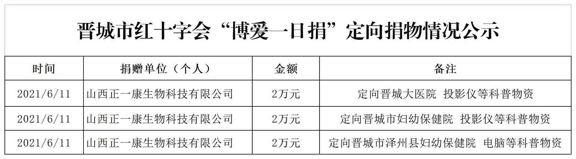 晋城市红十字会“博爱一日捐”定向捐物情况公示(2021年6月11日)
