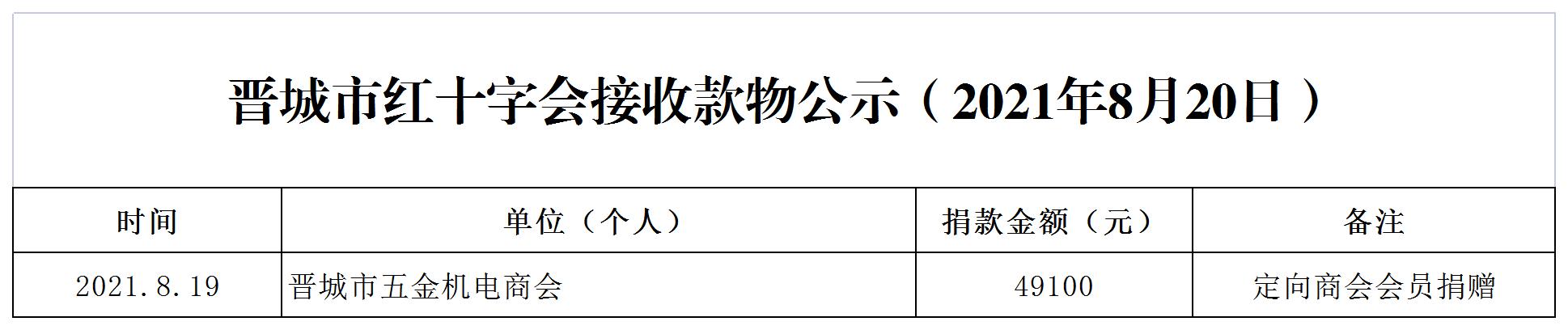 晋城市红十字会接收捐款公示(2021年8月20日)