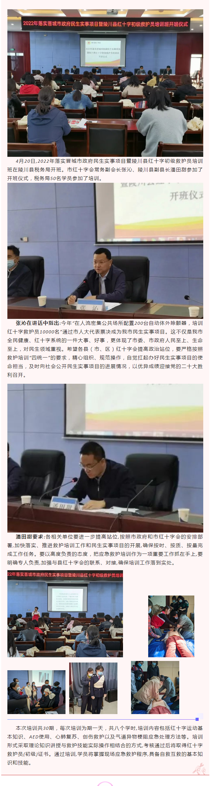 2022年落实晋城市政府民生实事项目暨陵川县红十字初级救护员培训班开班