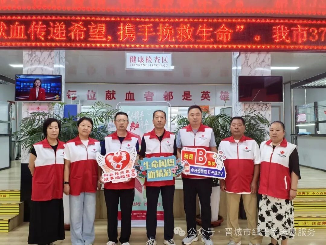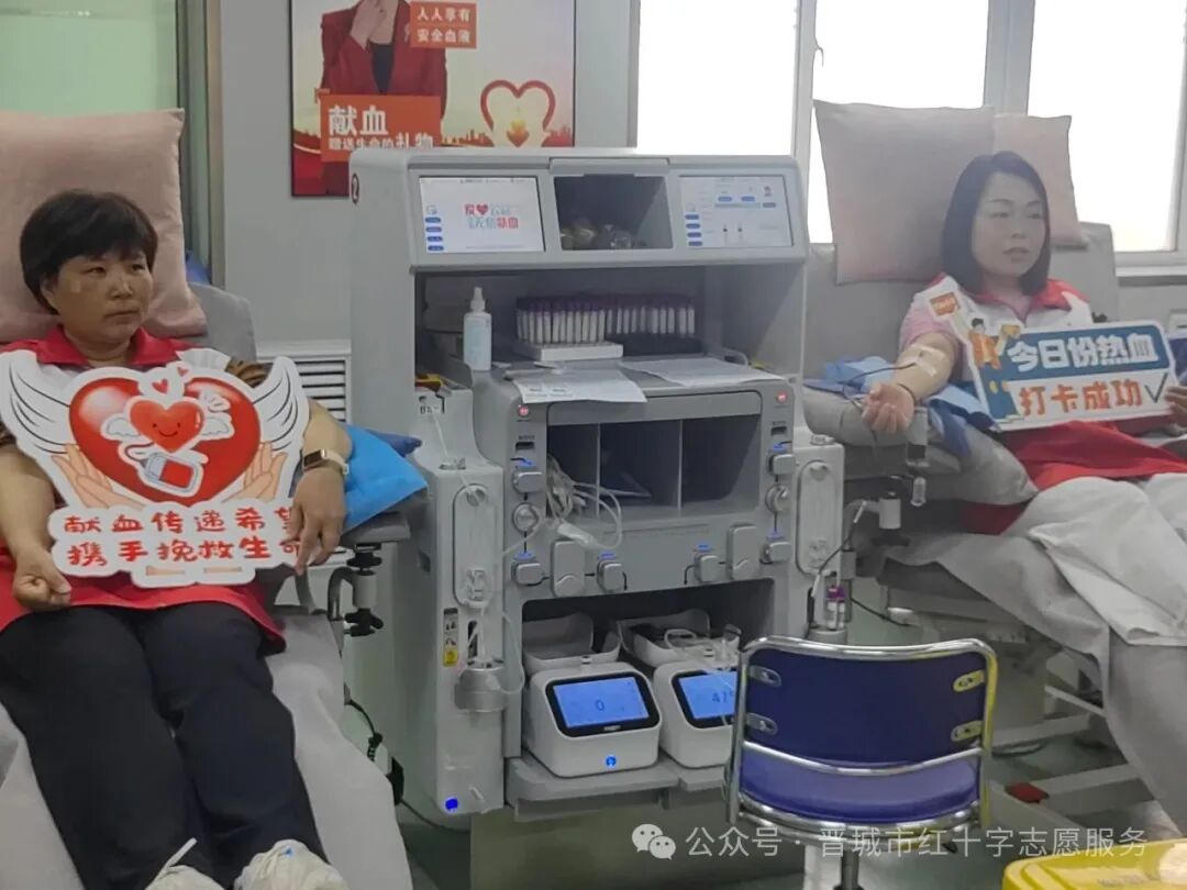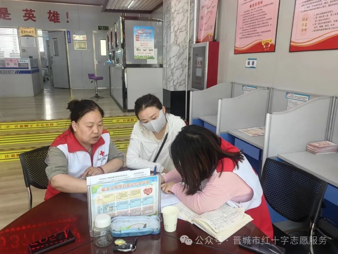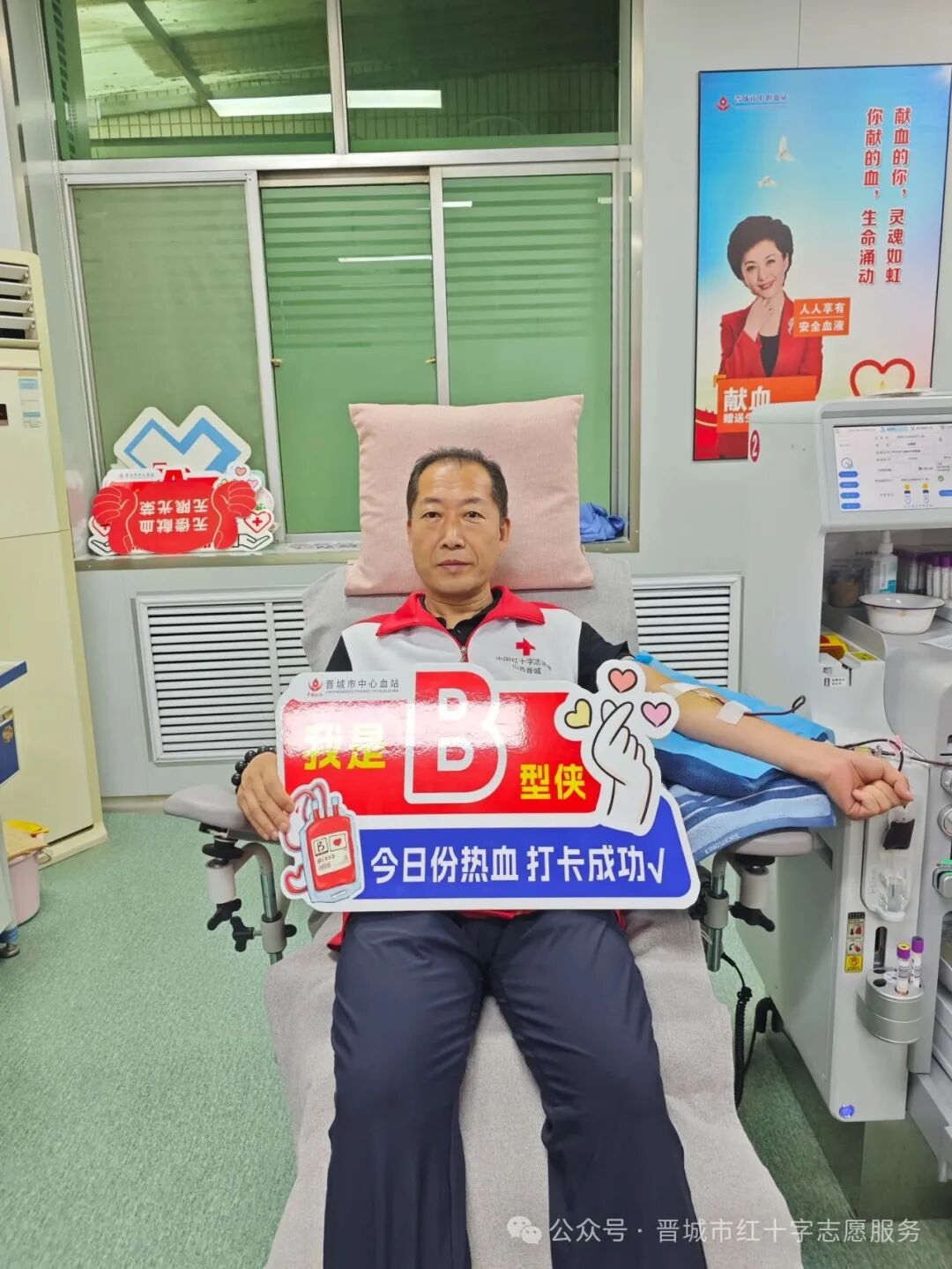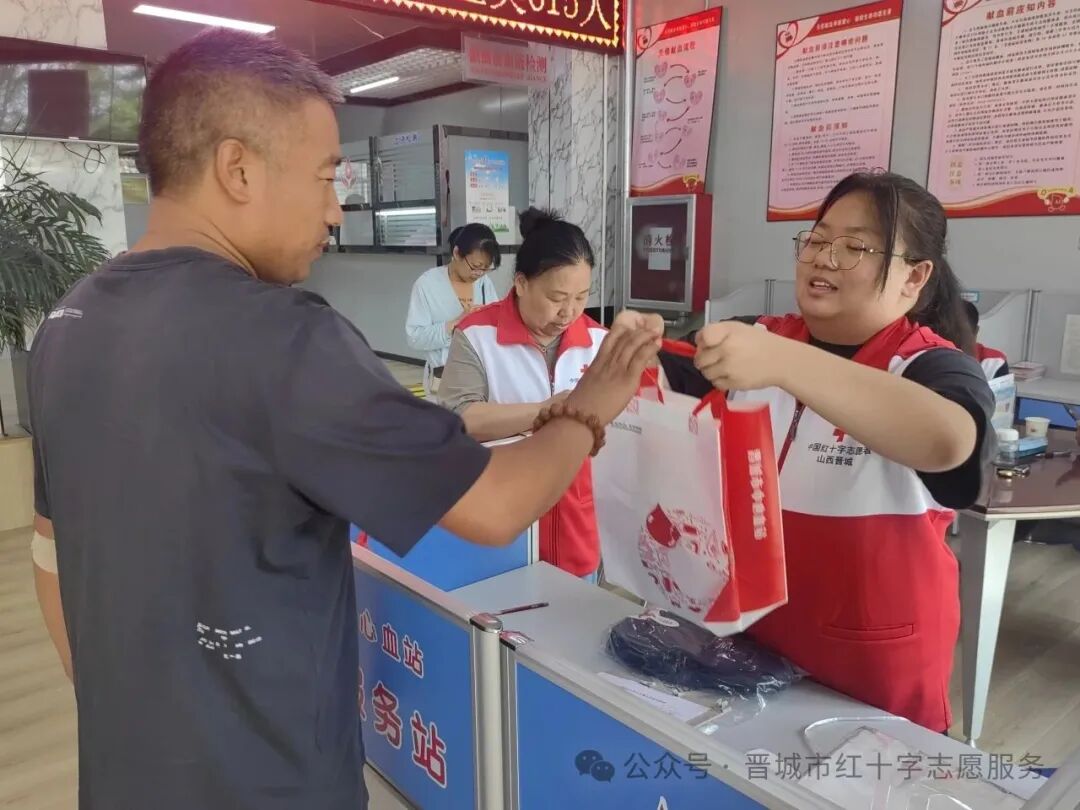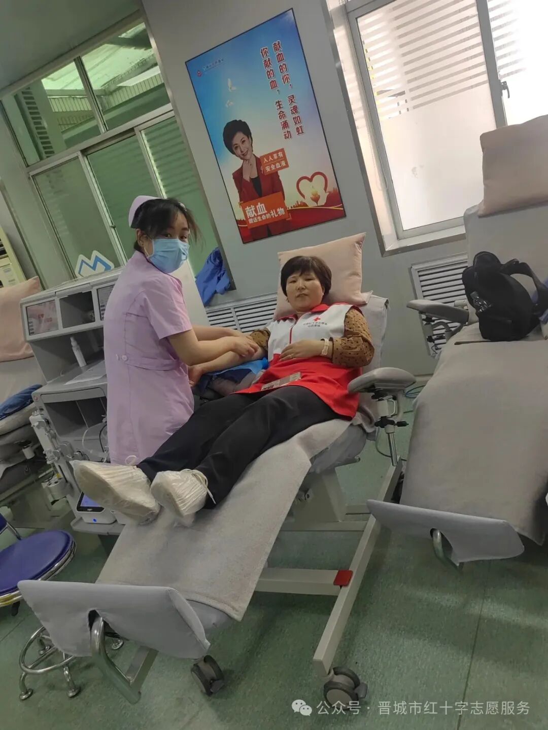 在6月14日当天,晋城市红十字三献志愿者一如既往早早来到中心血站,在队长郝淑花分配完任务后,各自开始忙碌。红十字志愿者王少鹏、任素军、许小平、晋红红、申文杰经过体检符合条件,成功完成献血。三献志愿服务队张萌在献完血后,稍事休息即投入志愿服务工作,为前来献血的爱心人士耐心解答问题、进行引导。在志愿服务队伍里,申师傅是耀眼的存在,他是无偿献血奉献奖及无偿献血志愿服务奖两个“终身荣誉奖”获得者。