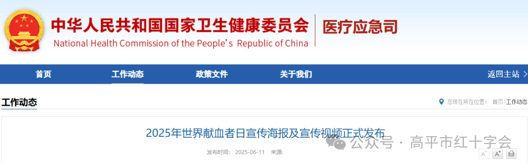 2025年世界献血者日宣传海报及宣传视频正式发布