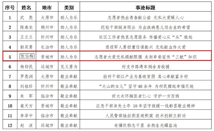 名单公示!我市红十字志愿者张仙梅上榜~