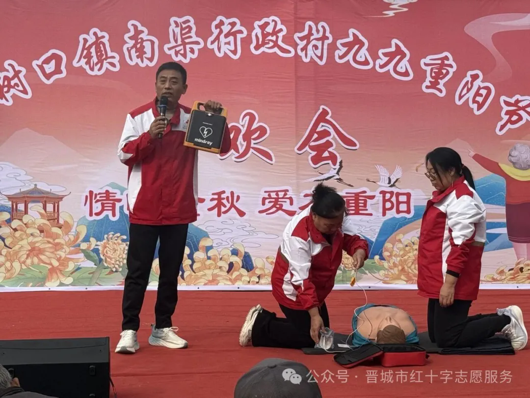 10月29日,重阳节当天,红十字志愿者来到泽州县柳树口镇南渠村,为村里百余位老人带来一场暖心又实用的急救知识宣讲,用专业守护农村老人的生命与健康。