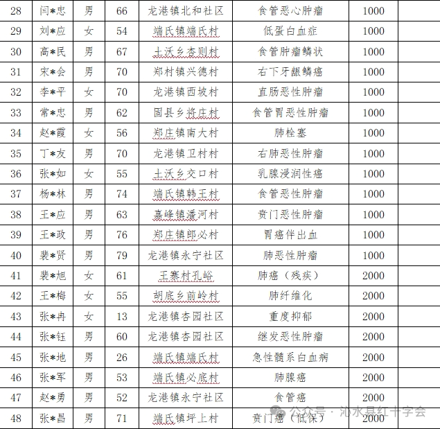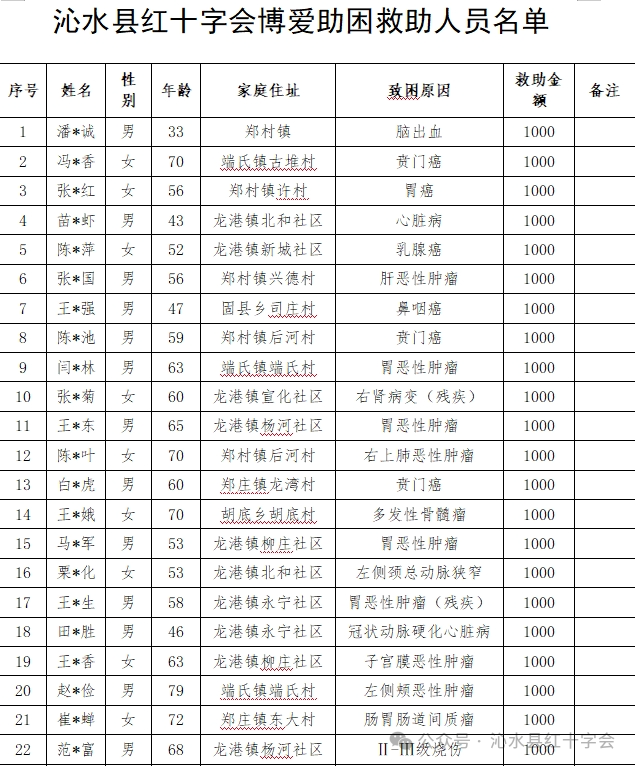 沁水县红十字会2025年博爱助困救助名单公示(第二批)