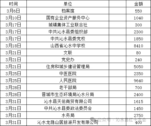 沁水县红十字会2025年“博爱一日捐”捐款情况公示(第一批)