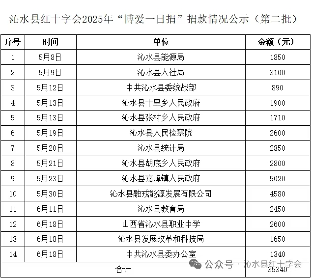 沁水县红十字会2025年“博爱一日捐”捐款情况公示(第二批)