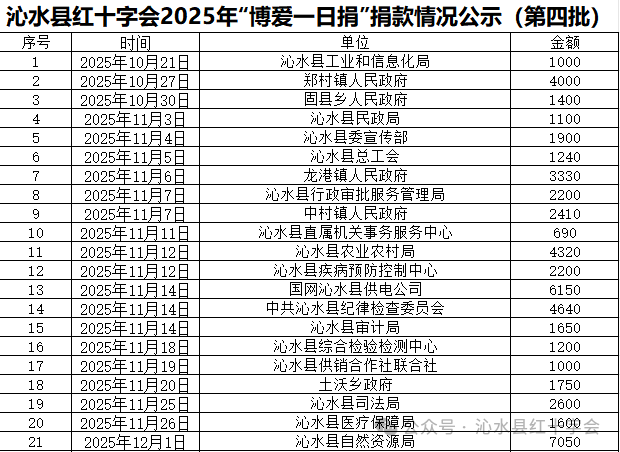 沁水县红十字会2025年“博爱一日捐”捐款情况公示(第四批)