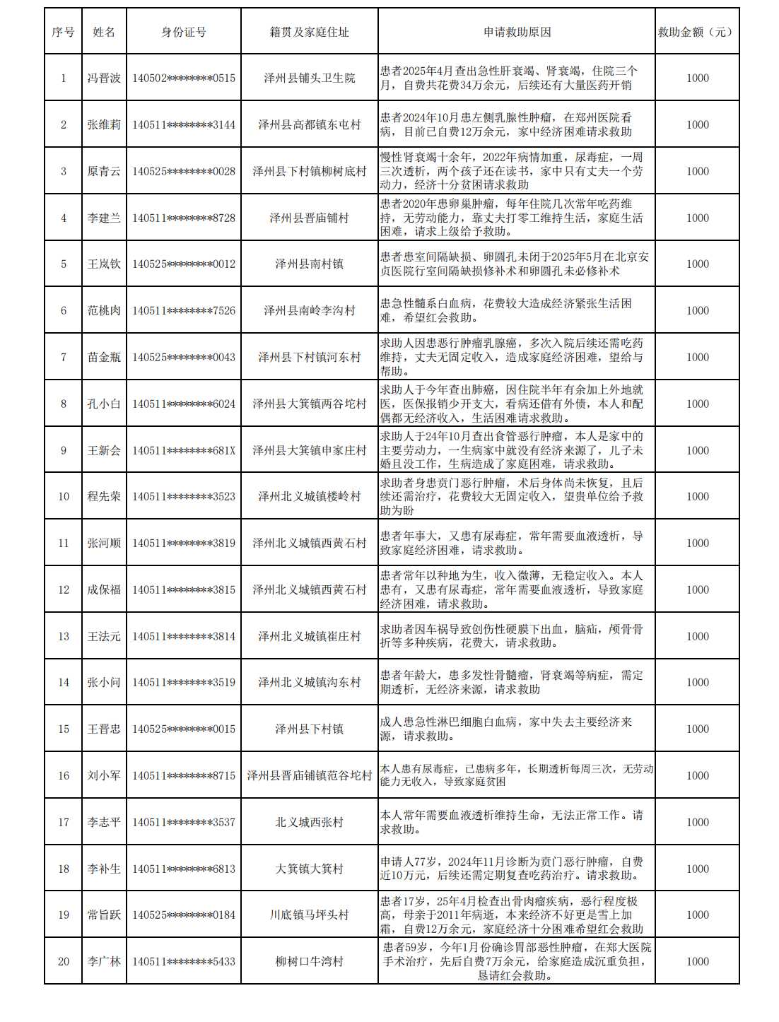 泽州县红十字会2025年第二批困难群体拟救助名单公示