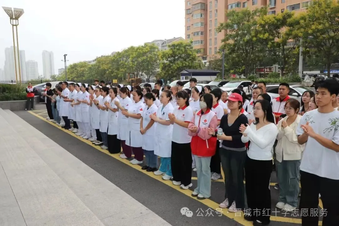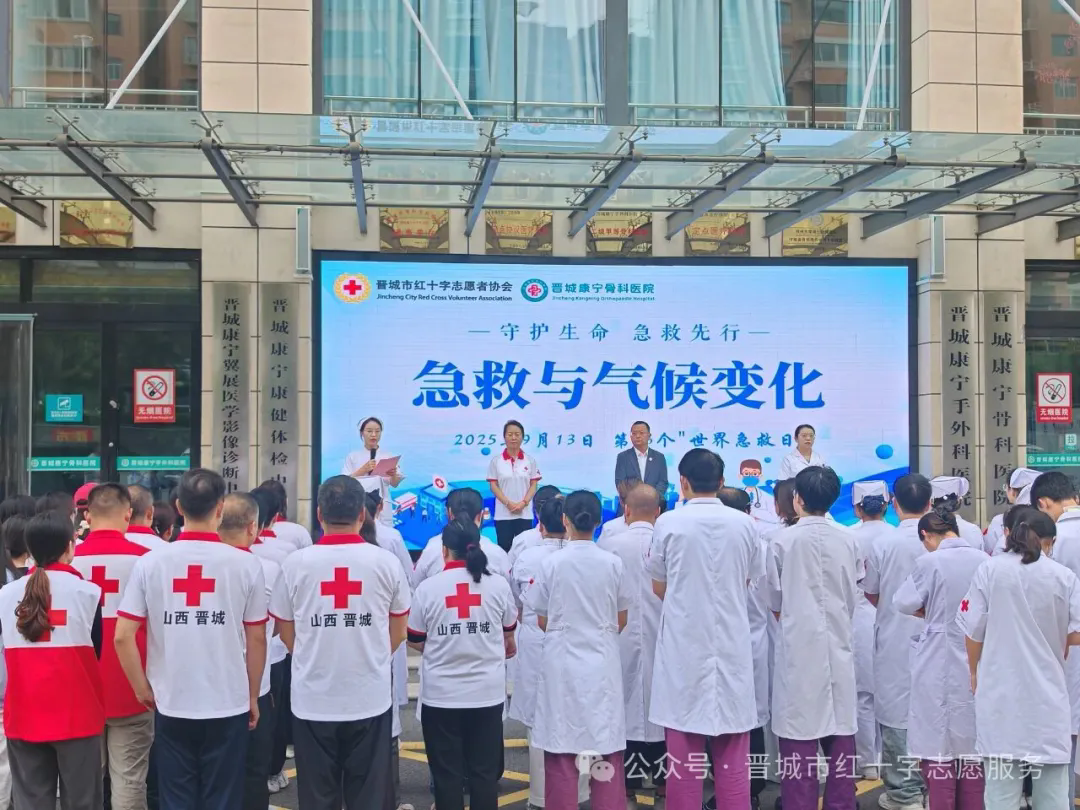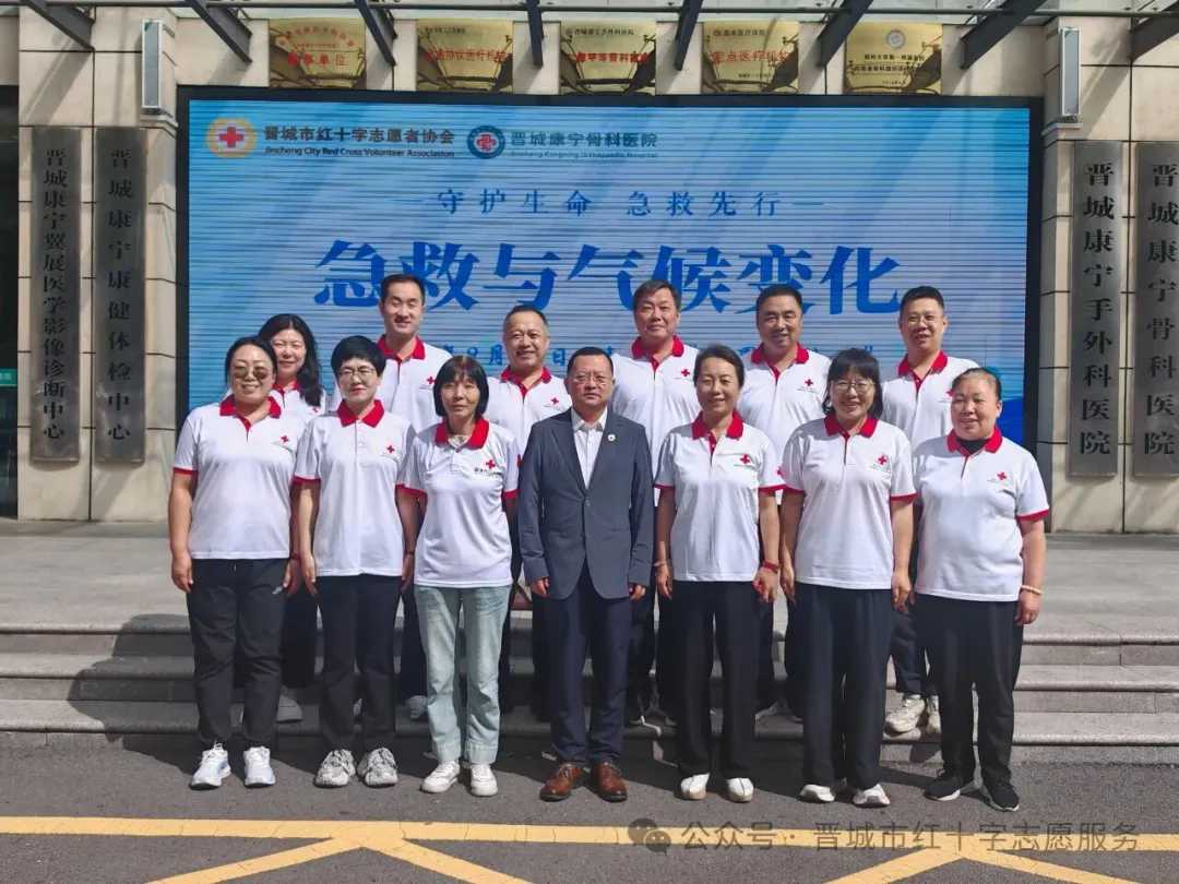 有近百人参加启动仪式。他们是晋城康宁骨科医院加入红十字志愿者队伍并取得救护证的医护人员、医院患者家属、过往群众及部分红十字志愿者。