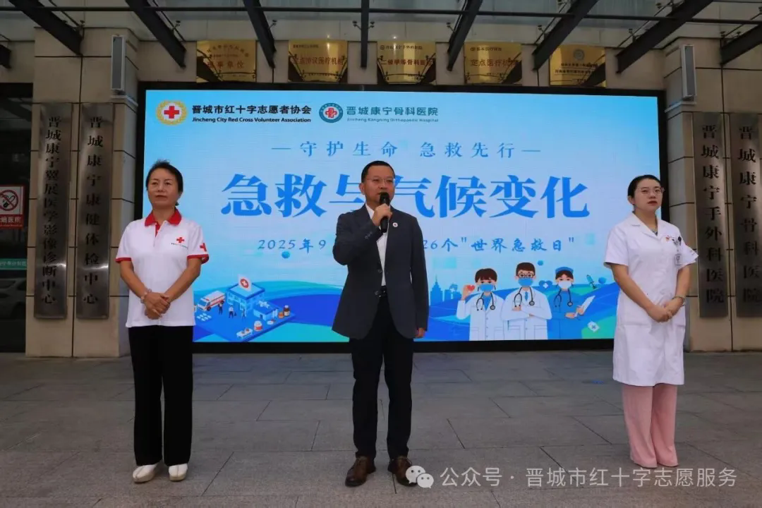 晋城市红十字会党组书记、常务副会长张沁出席活动并讲话。参加活动的领导还有晋城市红十字志愿者协会常务副会长宋晓莉、晋城康宁骨科医院党委书记付娜娜。活动由晋城市红十字志愿者协会副会长兼秘书长于斌主持。