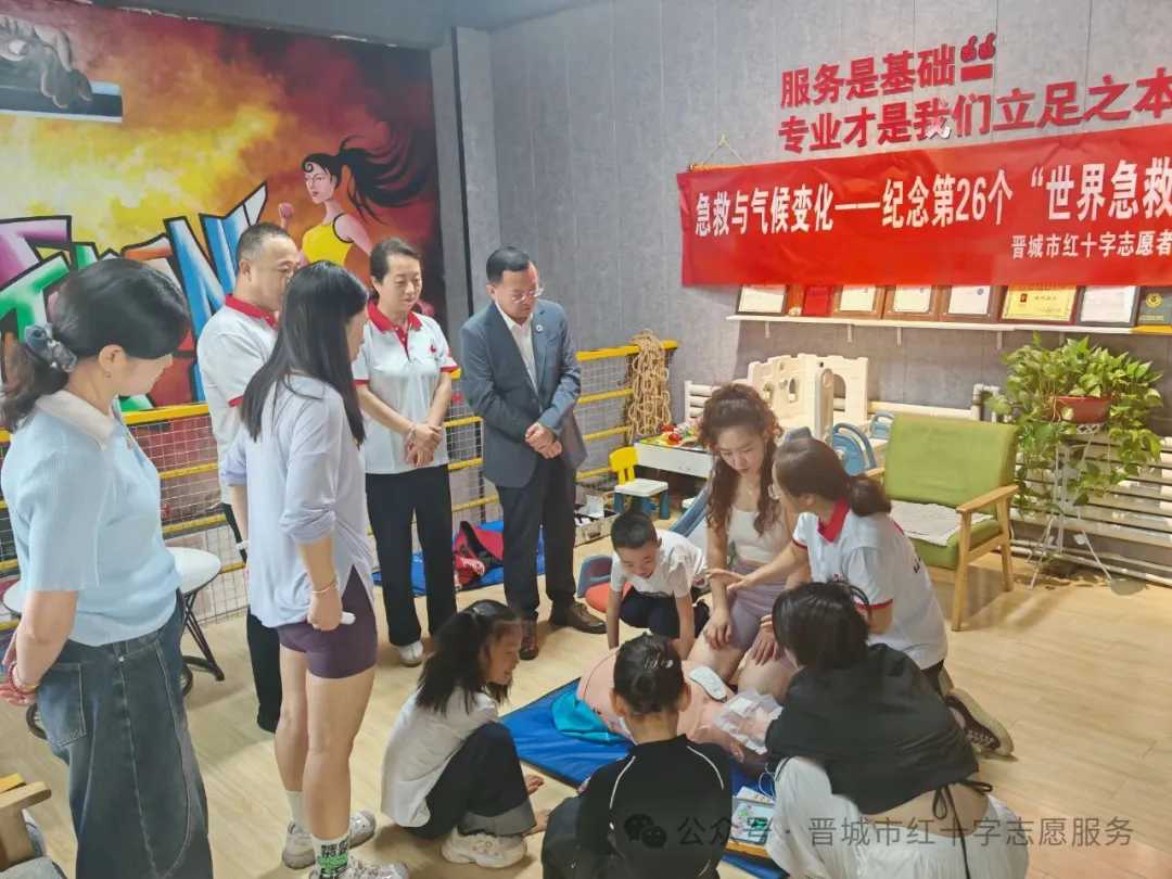 参加活动的还有晋城市红十字志愿者协会救护培训师资队伍。今天,他们将作为活动“主角”为现场的群众进行应急救护普及培训,传播急救技能。