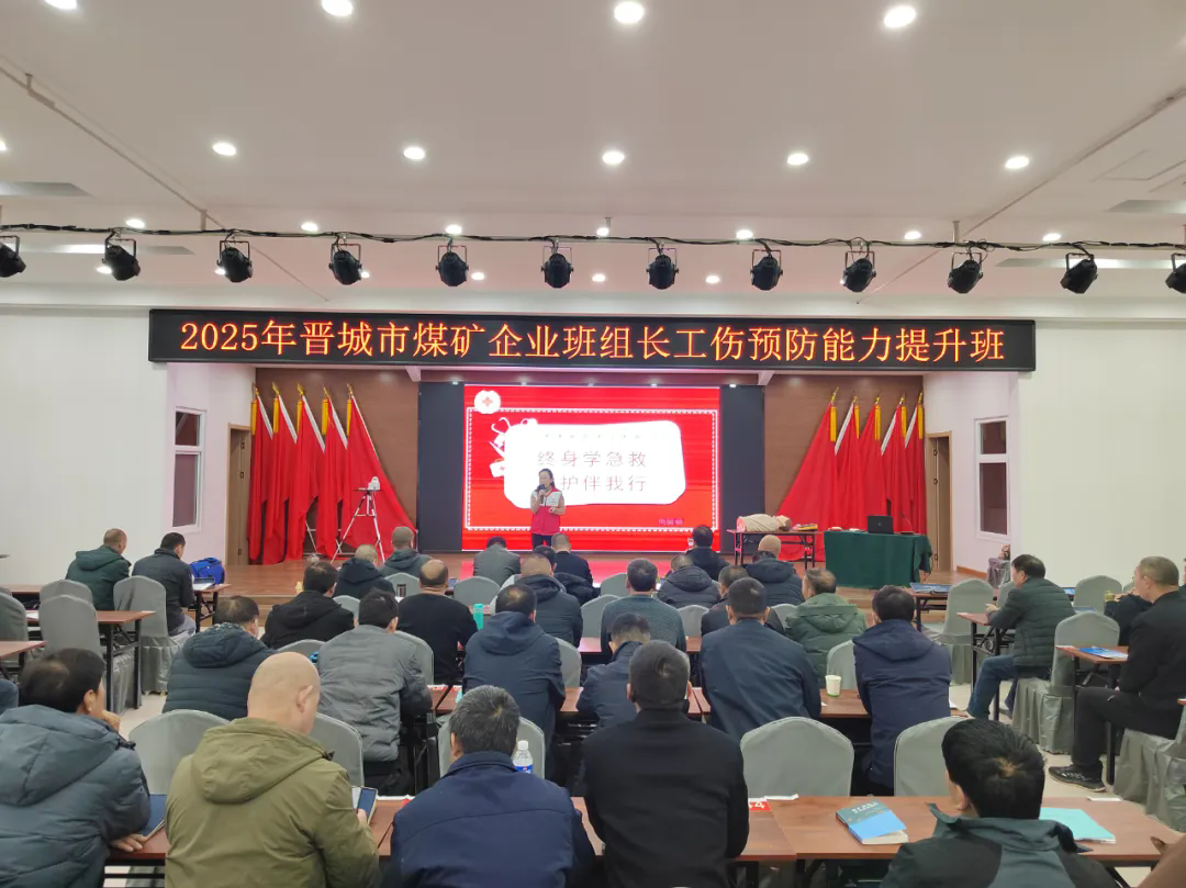 2025 年 12 月 5 日上午,晋城市红十字会社会工作服务中心工作人员走进天宁培训中心,为来自各煤矿企业的班组长们精心开展了一场极具实用价值的红十字应急救护知识培训。此次培训目标明确,旨在显著提升一线班组长的工伤预防意识与现场应急救护能力,为煤矿安全生产打造坚实的“第一道防线”。