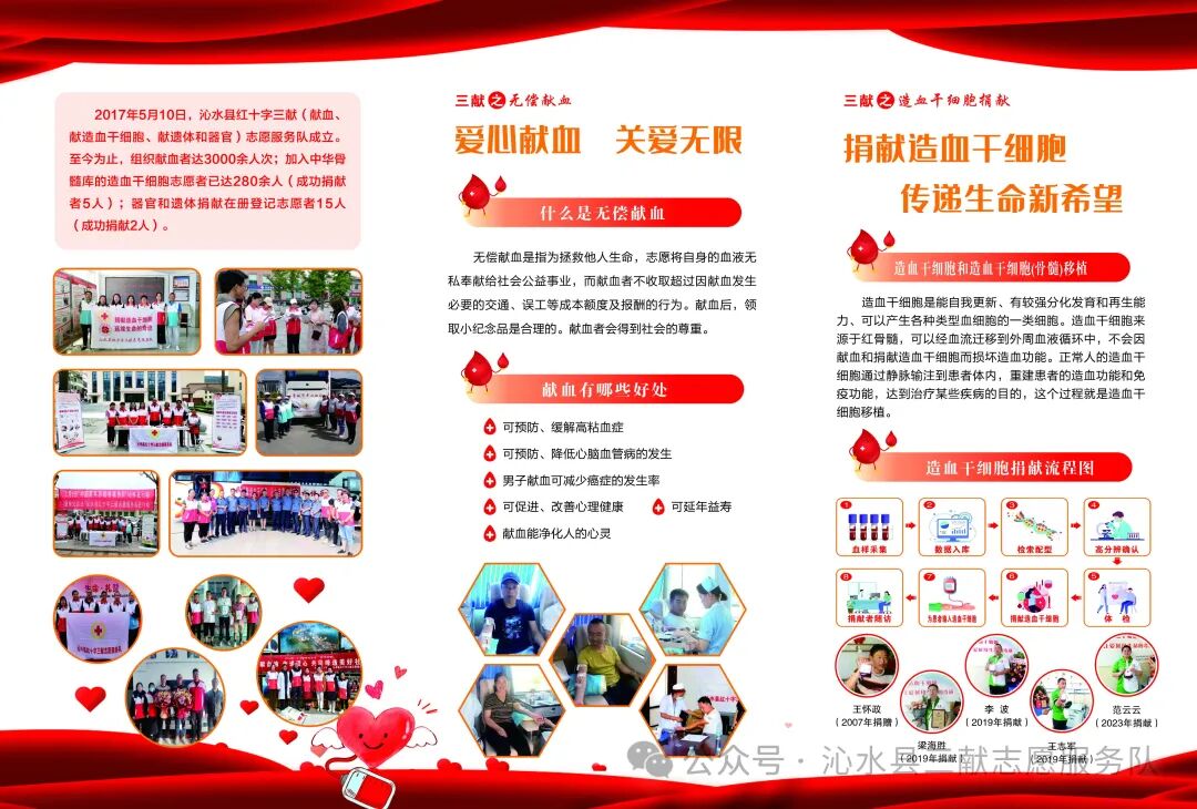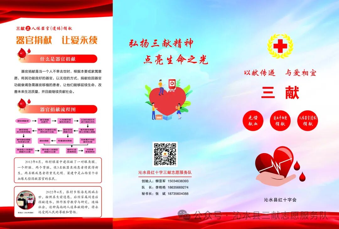 2017年5月10日,沁水县红十字三献(献血、献造血干细胞、献遗体和器官)志愿服务队成立。至今为止,组织献血者达3000余人次;加入中华骨髓库的造血干细胞志愿者已达280余人(成功捐献者5人);器官和遗体捐献在册登记志愿者15人(成功捐献2人)。沁水县红十字会将以此次“9·9公益日”活动为契机,凝聚力量,播撒爱心的种子,传播社会正能量,为我县红十字事业高质量发展展现新时代的新担当、新作为。