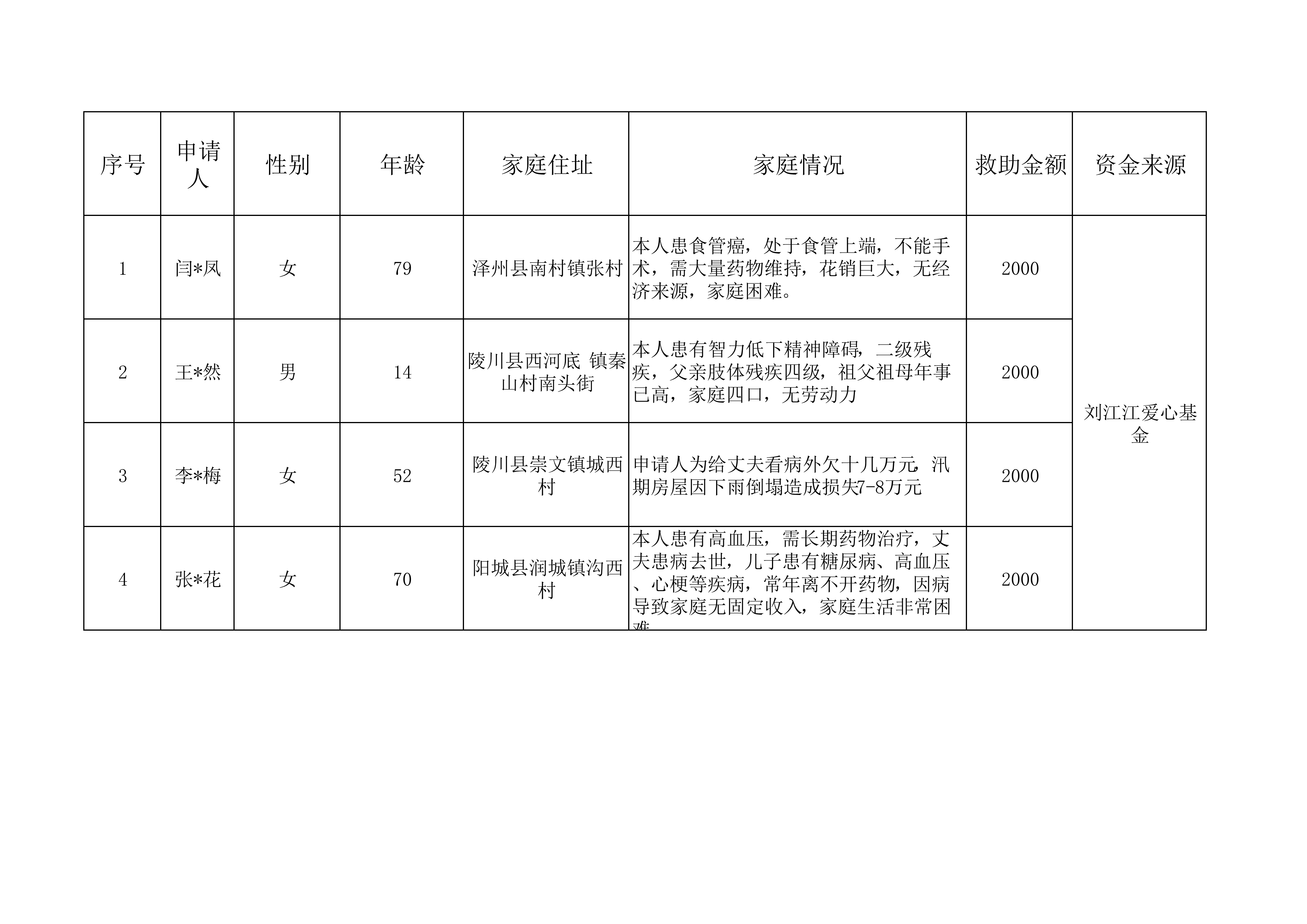根据捐赠人刘江江的意愿,经市红十字会审核,拟对张迷花等四人进行救助。现将救助名单公示如下:望社会各界监督,如有情况不属实,请在7日内举报。
